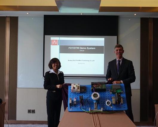 Glenn Schulz先生和譚海玲女士還共同為工作組各成員公司聯(lián)合制作的FDT演示墻揭幕。該演示墻基于FDT技術(shù),集成了成員公司的自動(dòng)化產(chǎn)品,體現(xiàn)了FDT設(shè)備集成技術(shù)的優(yōu)勢(shì),將有助于今后的市場(chǎng)推廣活動(dòng)。
