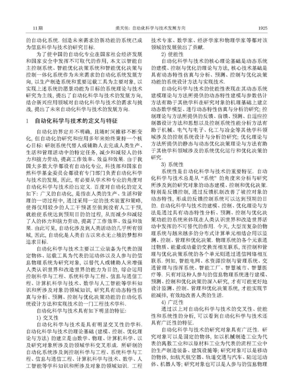 自動化科學與技術的核心理論基礎是動態系統的建模、控制與優化的理論與方法, 核心技術基礎是具有動態特性仿真與分析、預測、控制與優化決策功能的系統設計方法與實現技術.