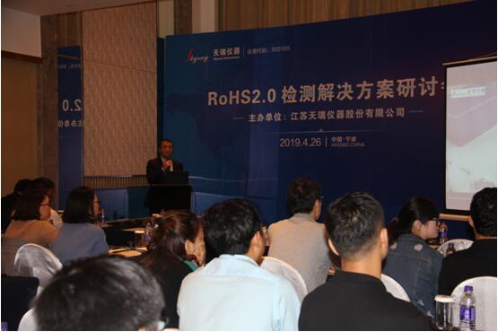 2019年4月26日,天瑞儀器RoHS2.0解決方案研討會巡演首站在浙江寧波香格里拉大酒店舉行。來自電子電器設備制造行業多名企業代表參與此次會議,聽取了天瑞儀器針對RoHS2.0法規的最新進展和應對方案,現場氣氛十分熱烈。