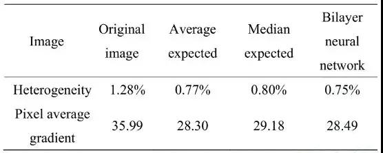 隨著科技的發展,紅外熱像技術的運用也更加廣泛,被測物體以及檢測環境的復雜程度也越來越高,基于標定的校正方法已經逐漸跟不上發展的需求了。而國內外的學者也逐步投入更多精力在基于場景的非均勻校正方法的研究上,早在20世紀90年代,美國海軍研究實驗室的D.A.Scribner等人提出了基于神經網絡的場景非均勻校正算法。王嫻雅等人通過分析了傳統的周期性神經網絡自適應非均勻校正方法在采用局部領域數據估計輸出期望時其精度不夠,從而提出一種利用當前像素領域和讀出通道估計輸出期望值的方法。該方法可有效抑制焦平面固定圖案噪音,提高被測目標的分辨率。在優化單層所使用的期望函數上,B.Chen等人提出雙層學習神經網絡算法,在不同的神經網絡層使用不同的期望函數,雙層神經網絡之間優勢互補,同時具備非均勻性校正效果和改善圖像清晰度,獲得了更高質量的紅外圖像,該算法與其他改進BP神經網絡算法比較結果如表1所示。