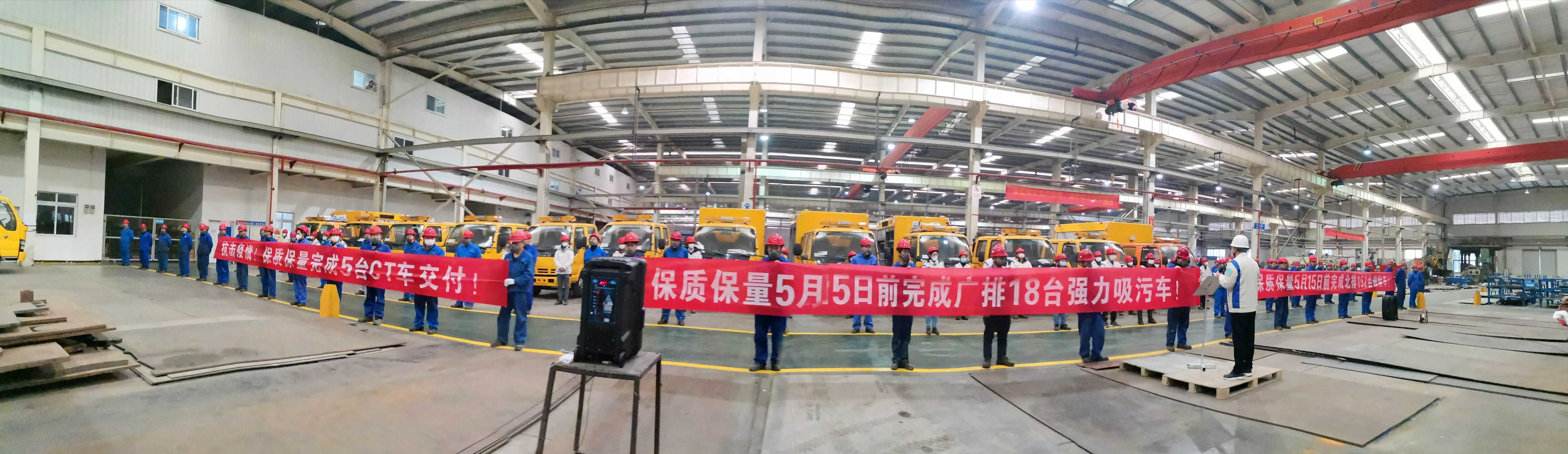 長風破浪會有時,直掛云帆濟滄海。歷經十年磨礪,終于在2020年初迎來歷史性的時刻,18臺強力吸污車、152臺救險車、5臺CT車同期批量排產。為保質、保量順利完成交付,在這個特殊的時期對全體家人進行動員。
