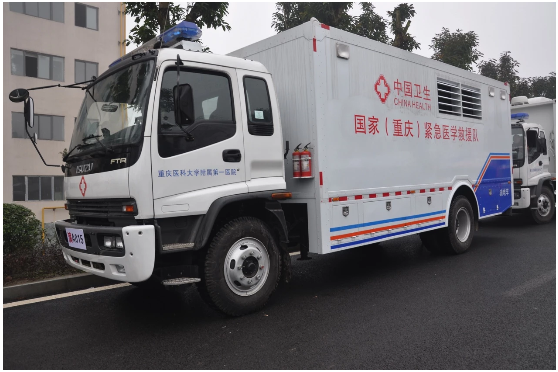 2020年2月4日18時57分,重慶第四批援鄂醫(yī)療隊出征,其中不僅包括重慶醫(yī)科大學(xué)附屬第一醫(yī)院的15名醫(yī)護人員作為國家緊急醫(yī)學(xué)救援隊成員集結(jié)出征,還有4臺“變形金剛”式的醫(yī)療設(shè)備車輛一起出發(fā)。這4臺車分別為普通門診車,醫(yī)學(xué)檢驗車,油電車、藥械車,從門診、檢驗、拿藥到油電補給,這4輛醫(yī)療設(shè)備車輛就像是一個“移動門診部”。這次抵達(dá)湖北后,將與重慶市衛(wèi)健委增援的其他設(shè)備車輛組成一個“移動”的“二級甲等醫(yī)院”,助力湖北抗擊疫情。