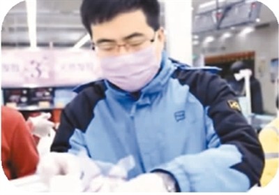 邵百順原是哈爾濱一家酒店的大廚,春節后一直賦閑在家,一次打開支付寶“疫情直通車”搶菜,邵百順刷到了一條“藍海就業共享平臺”的信息,顯示可以讓被迫關停的餐廳酒店等服務行業的員工,在待業期間“共享”到人員緊缺的生鮮和外送行業。通過嚴格的體檢、健康申報、防護培訓等程序后,邵百順成為一名家樂福超市的分揀員。