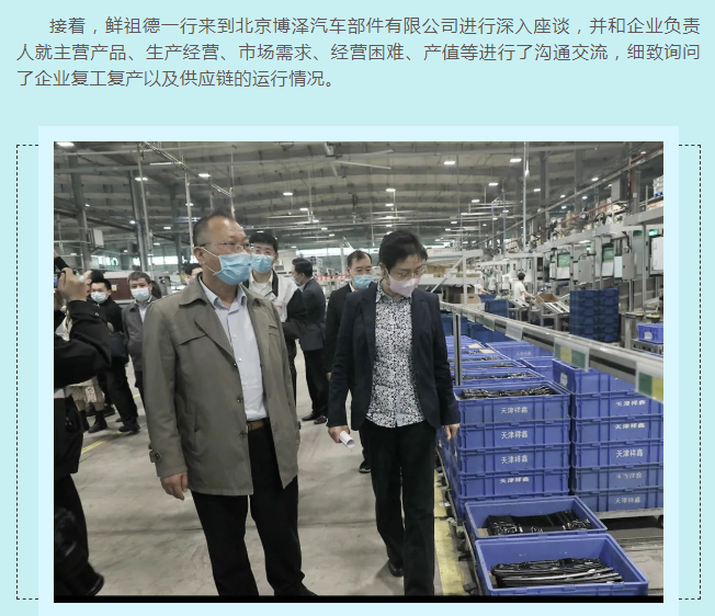 為充分發揮統計部門優勢,及時客觀了解新冠疫情對小微企業的影響,進一步把脈疫情對工業經濟的影響程度,準確把握小微工業企業的需求和期待,4月15日,國家統計局黨組成員、副局長鮮祖德一行深入大興區小微工業企業一線,開展現場調研。北京市政府副秘書長王文杰、北京市統計局局長蔣力歌、國家統計局北京調查總隊總隊長徐榮華、國家統計局工業司副司長張衛華、北京市統計局副局長吳萬標、大興區常務副區長高念東陪同調研。