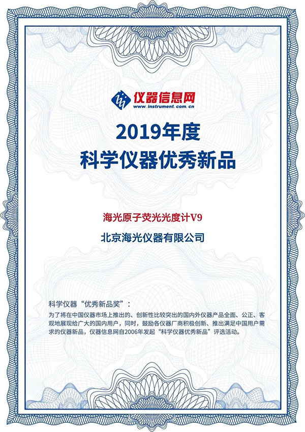 2020年5月20日,由儀器信息網(wǎng)主辦,“科學(xué)儀器優(yōu)秀新品”評(píng)審委員會(huì)、“新品首發(fā)”欄目承辦的科學(xué)儀器“優(yōu)秀新品獎(jiǎng)”在線發(fā)布盛典盛大召開,2019年度科學(xué)儀器“優(yōu)秀新品獎(jiǎng)”獲獎(jiǎng)名單首次在云端揭曉,海光HGF-V9原子熒光光度計(jì)榮獲該獎(jiǎng)項(xiàng)。