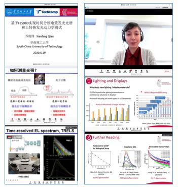 5月19日迎來(lái)了第一場(chǎng)以顯示與成像材料為主題的專題講座,榮幸地邀請(qǐng)到來(lái)自華南理工大學(xué)材料學(xué)院的副研究員喬現(xiàn)鋒老師,進(jìn)行了題為“基于FLS980實(shí)現(xiàn)時(shí)間分辨電致發(fā)光光譜和上轉(zhuǎn)換發(fā)光動(dòng)力學(xué)測(cè)試”的報(bào)告。深入淺出地介紹了TCSPC原理,時(shí)間分辨電致發(fā)光的解決方案及上轉(zhuǎn)換發(fā)光動(dòng)力學(xué)的測(cè)試實(shí)例。來(lái)自愛丁堡的應(yīng)用產(chǎn)品專家Maria博士再次與直播網(wǎng)絡(luò)的形式與國(guó)內(nèi)用戶見面,介紹了包含了使用穩(wěn)態(tài)/瞬態(tài)熒光,瞬態(tài)吸收,拉曼光譜技術(shù)在熒光探針、LED與OLED材料、上轉(zhuǎn)換等發(fā)光材料的應(yīng)用。