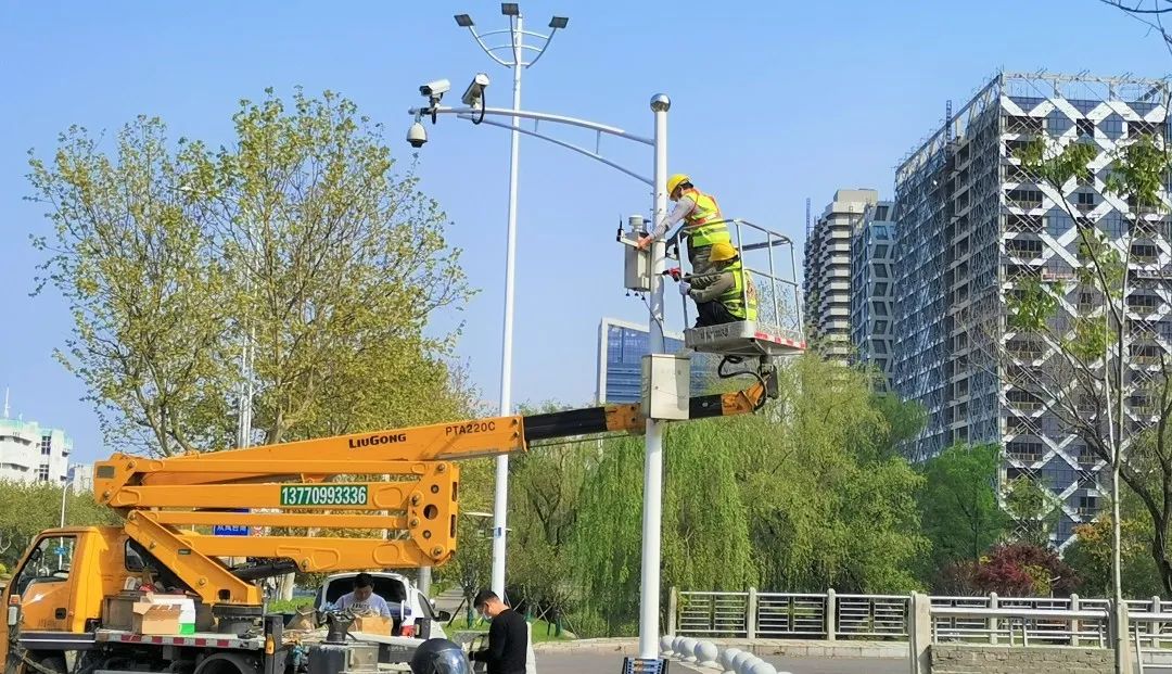 除了地面監(jiān)控,調(diào)度平臺還接入了一個高空“鷹眼”——在位于南京市建鄴區(qū)江山大街的一個通信高塔上,架設(shè)在50米高空的360度高清攝像頭將周邊所有的工地納入視線。