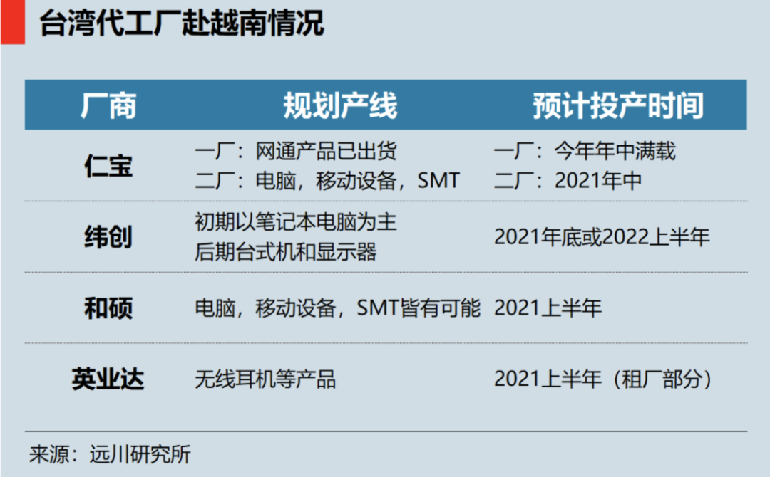 “仁寶”重啟了在北越永福的工廠,網(wǎng)通產(chǎn)品一廠即將滿載,生產(chǎn)PC的二廠也將在明年年中投產(chǎn)。一些心急的企業(yè)甚至等不及買地建廠。比如通信設(shè)備廠商“啟碁”則直接租下漢達(dá)精密的一間廠房,畢竟再晚一兩個月,美國大客戶可能就保不住了。