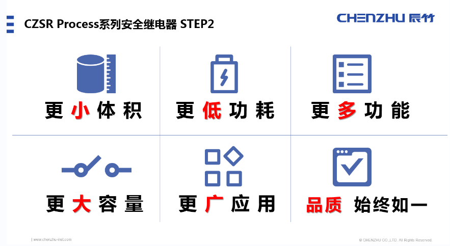 此次辰竹發布的新一代CZSR Process系列安全繼電器,擁有以下特點: