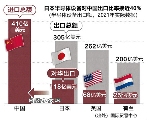 聯合國國際貿易中心的統計顯示,日本2021年向中國本土出口的制造設備達到約120億美元,金額占出口到全世界的設備的近4成,在所有地區中最高。出口額是美國對華設備出口的近2倍。