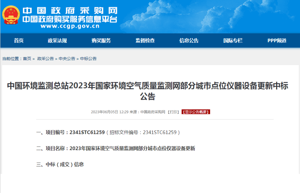 2023年6月5日,中國(guó)環(huán)境監(jiān)測(cè)總站2023年國(guó)家環(huán)境空氣質(zhì)量監(jiān)測(cè)網(wǎng)部分城市點(diǎn)位儀器設(shè)備更新項(xiàng)目發(fā)布中標(biāo)公告,先河環(huán)保成功中標(biāo)第3包和第4包,金額2100萬(wàn)元。公司將全力以赴認(rèn)真履約,為我國(guó)生態(tài)環(huán)境監(jiān)測(cè)網(wǎng)建設(shè)和深入打好藍(lán)天保衛(wèi)戰(zhàn)提供技術(shù)和服務(wù)支撐。