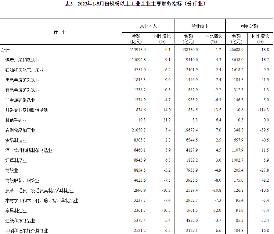 5月份,規(guī)模以上工業(yè)企業(yè)實(shí)現(xiàn)利潤(rùn)總額6358.1億元,同比下降12.6%