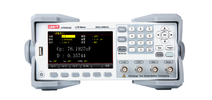 UTR2830E系列LCR數字電橋采用4.3英寸 TFT-LCD顯示屏,可支持雙/四參數同時顯示,測試頻率20Hz~200kHz,全數字鍵盤,搭配實時操作系統,操作更簡便。0.05%的基本精度,比較器支持10檔分選,測試更可靠。可滿足生產線質量保證、進貨檢驗及自動化生產、實驗室測試的需求。