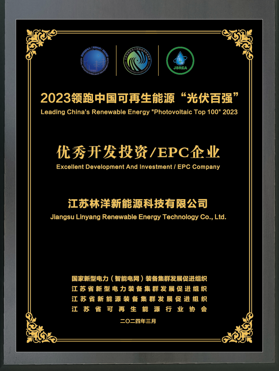 晚間舉辦的2023領跑中國可再生能源“光伏百強”頒獎典禮中,林洋新能源憑借卓越實力榮獲2023領跑中國可再生能源“優秀光伏電站/EPC企業”大獎,再次展示了公司在光伏領域的領先行業地位和社會影響力。