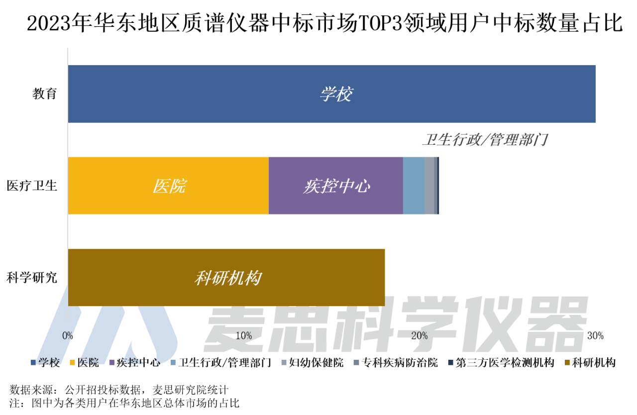 科學研究領域的用戶為科研機構,2023年中標數量占比接近20%,是當前華東地區質譜儀器中標市場的第二大采購群體。