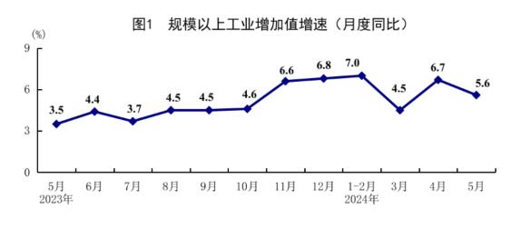 5月規模以上工業增加值同比增長5.6% 國民經濟延