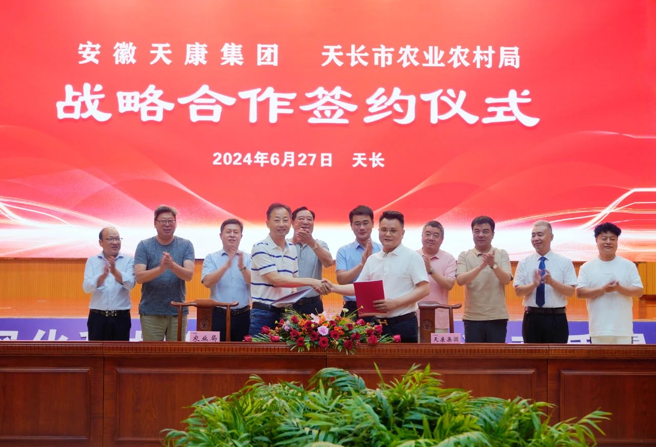 儀式上,安徽天康集團總經(jīng)理毛文章與天長市農(nóng)業(yè)農(nóng)村局局長王德佑代表雙方簽訂戰(zhàn)略合作協(xié)議書,與會領導共同見證了這一具有重大意義的時刻。