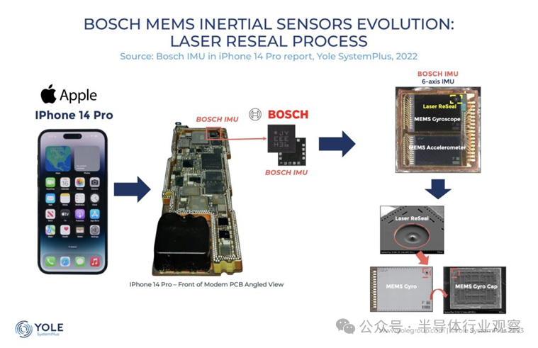 博世甚至推出了一項(xiàng)新的制造技術(shù)!其新的激光重新密封工藝顯著降低了壓力變化,從而最大限度地提高了 iPhone 14 Pro 內(nèi)慣性傳感器的性能。雖然該工藝比以前的工藝貴三倍,但它允許將 MEMS 陀螺儀和加速度計(jì)集成到同一個(gè)芯片上,從而進(jìn)一步縮小傳感器體積,更好地控制腔內(nèi)真空度。
