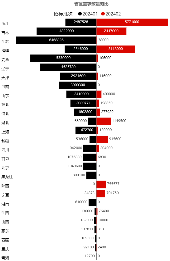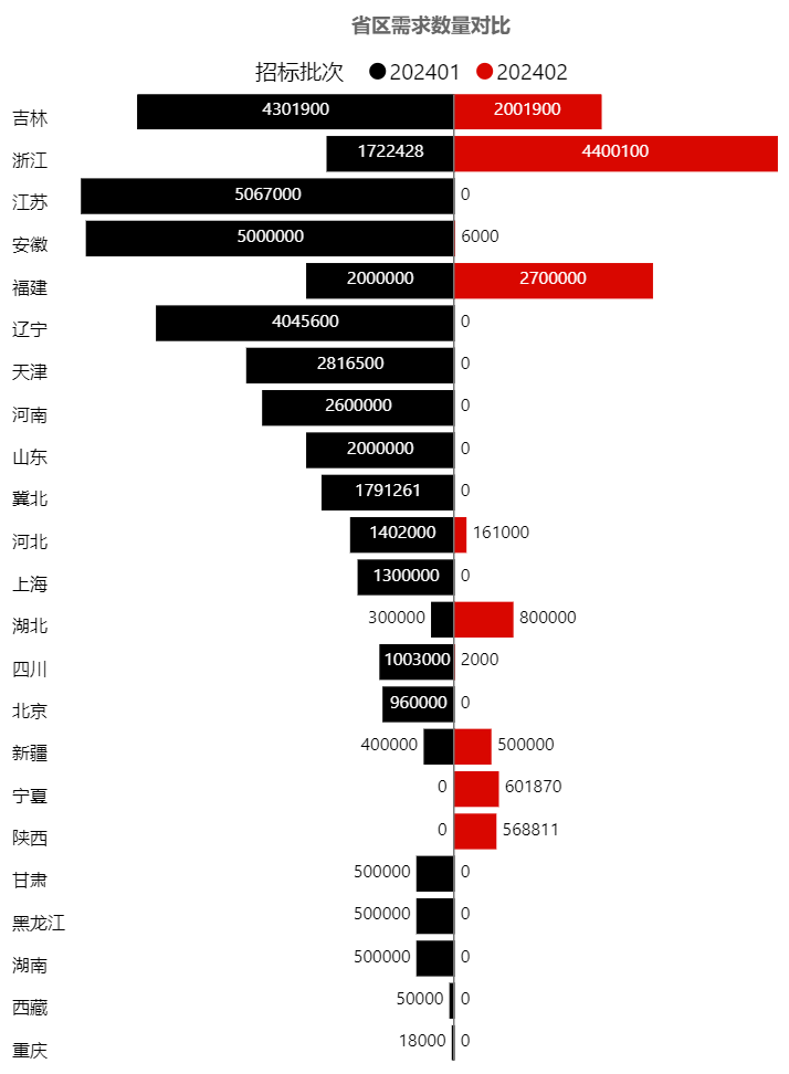 本批次的主要需求來自浙江、福建、吉林,均達到200萬只以上,以上3省需求占批次總量69%左右。