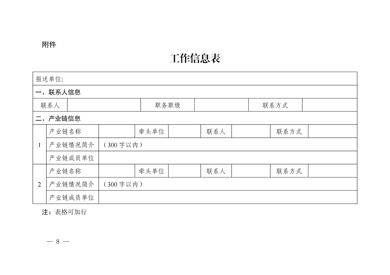 (十一)加強組織實施。各省級知識產(chǎn)權(quán)局會同相關部門,依托專利轉(zhuǎn)化運用專項行動推進機制,面向重點產(chǎn)業(yè)建立產(chǎn)業(yè)鏈企業(yè)聯(lián)系工作機制,因地制宜開展產(chǎn)業(yè)知識產(chǎn)權(quán)強鏈增效工作;鼓勵中央企業(yè)選取細分領域,協(xié)同產(chǎn)業(yè)鏈上下游企業(yè)以及相關高校、科研機構(gòu),共同開展產(chǎn)業(yè)知識產(chǎn)權(quán)強鏈增效工作。各省級知識產(chǎn)權(quán)局以及有關中央企業(yè)于8月15日前將工作信息表(見附件)報送國家知識產(chǎn)權(quán)局,以半年為周期報送工作進展情況,有關重大情況要及時報告相關主管部門。