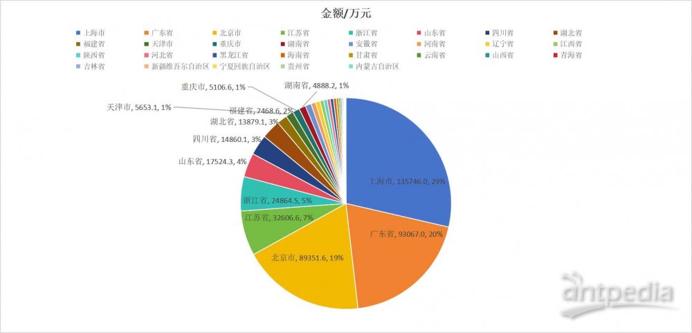 2024年上半年進(jìn)口總金額達(dá)到47.5億元,其中,上海13.6億元,占比29%,廣東9.3億元,占比20%,北京8.9億元,占比19%,江蘇3.2億元,占比7%,浙江2.5億元,占比5%
