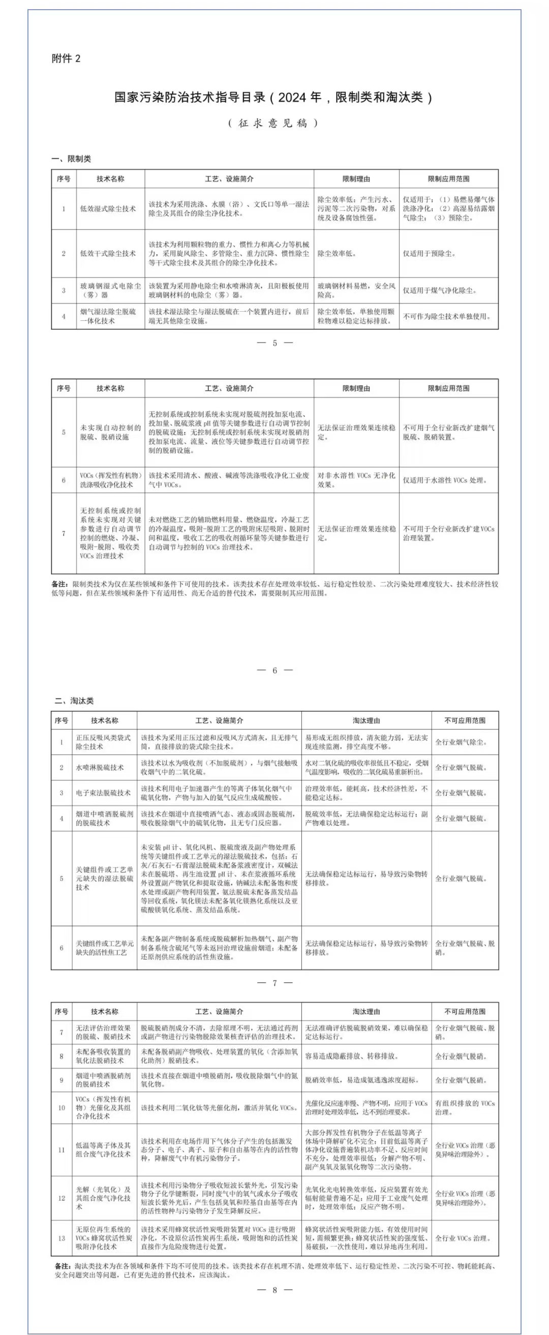 為更好發揮技術指導作用,推動生態環境領域設備更新和技術進步,生態環境部日前發布關于征求《國家污染防治技術指導目錄(2024年,限制類和淘汰類)》(征求意見稿)意見的函,向有關單位征求意見。