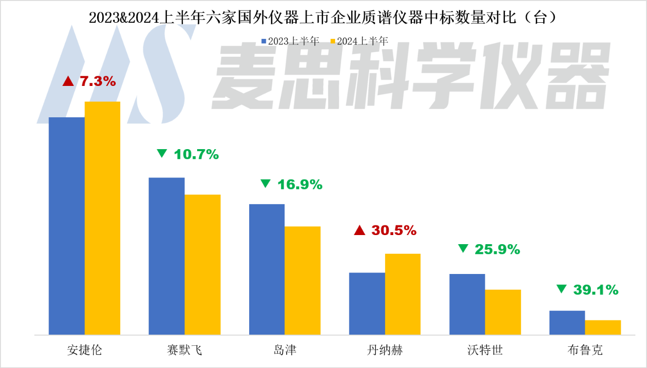 麥思研究院近期對(duì)賽默飛、丹納赫、安捷倫、布魯克、沃特世和島津六家國(guó)外上市儀器企業(yè)的2024上半年度財(cái)務(wù)數(shù)據(jù)、中國(guó)市場(chǎng)中標(biāo)情況以及近期企業(yè)動(dòng)態(tài)進(jìn)行了梳理。