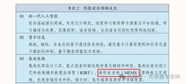 20213月,十四五規(guī)劃發(fā)布,將智能傳感器重要制造技術(shù)——MEMS(微機電系統(tǒng))工藝,寫入【科技前沿領(lǐng)域攻關(guān)】技術(shù)項目中。