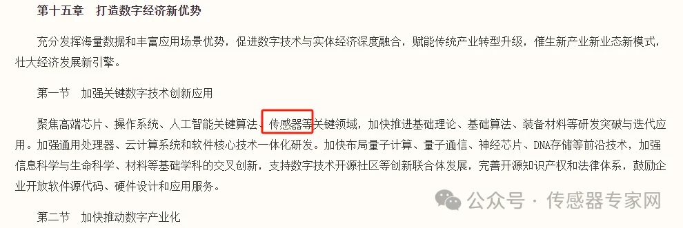 同時,將傳感器與高端芯片、操作系統(tǒng)、人工智能關(guān)鍵算法等并列,作為我國建設(shè)數(shù)字經(jīng)濟的關(guān)鍵領(lǐng)域。
