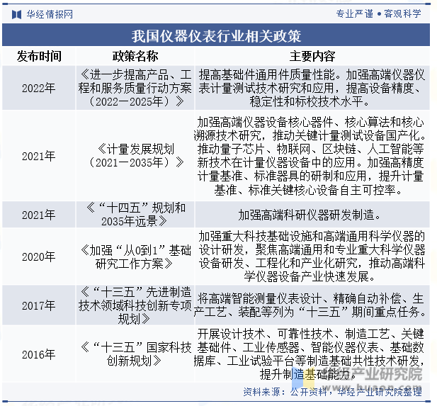 近年來我國密集出臺涉及儀器儀表行業及相關應用領域的產業政策,在政策支持下,隨著國內頭部企業逐漸突破核心技術和產品力兩大發展障礙,國內企業有望占據更高的市場份額。
