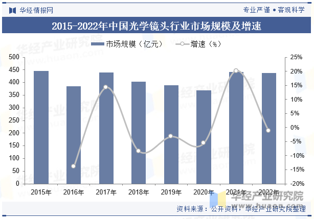 鏡頭是光學儀器的核心部件,20世紀以來光電子技術的快速發展帶動光學鏡頭的應用范圍從最初的顯微鏡、望遠鏡、膠片相機等領域向安防視頻監控、數碼相機/攝像機和智能手機等領域滲透。數據顯示,2022年我國光學鏡頭行業市場規模約為437.49億元,同比減少1.16%