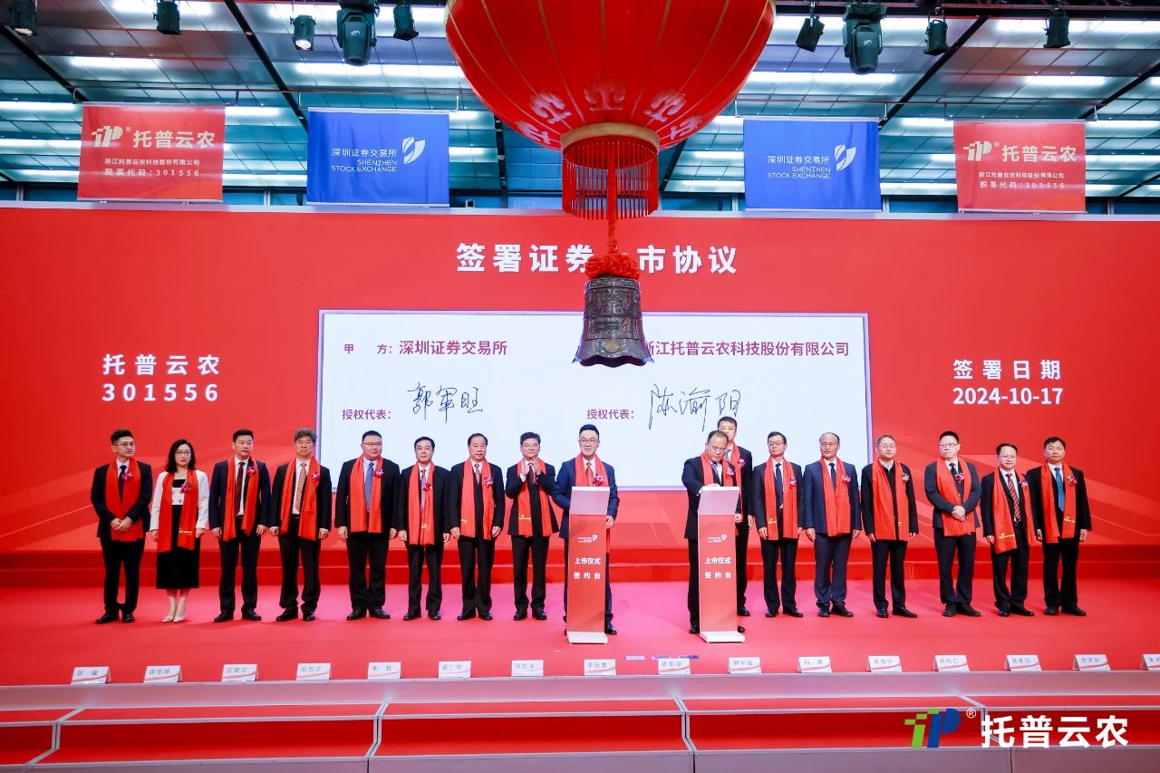 20241017日,隨著深圳證券交易所儀式大廳的鐘聲響起,浙江托普云農科技股份有限公司(股票簡稱:托普云農,股票代碼:301556)正式在深交所創業板鳴鐘上市!