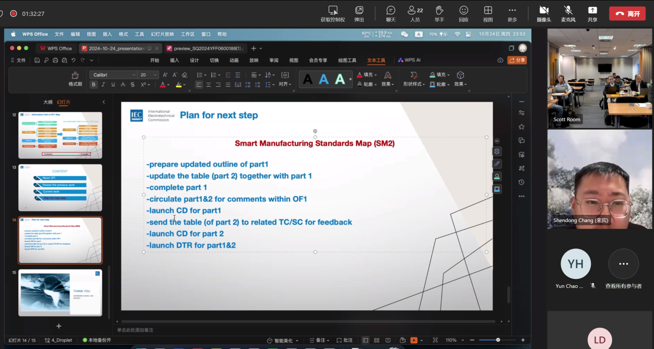 儀綜所常莘東工程師作為OF1“智能制造標準圖開放論壇組”聯(lián)合召集人,與德國專家Udo Bausch先生共同組織召開了工作組會議。會上主要介紹了ISO/IEC TR 63306《智能制造標準圖》系列標準的修訂背景,討論了第二版標準映射圖的主要維度。會議建議標準圖維度應(yīng)與ISO/IEC 62264《企業(yè)控制系統(tǒng)集成》、ISO/IEC 63339《智能制造統(tǒng)一參考模型》保持一致,并盡快啟動修訂。