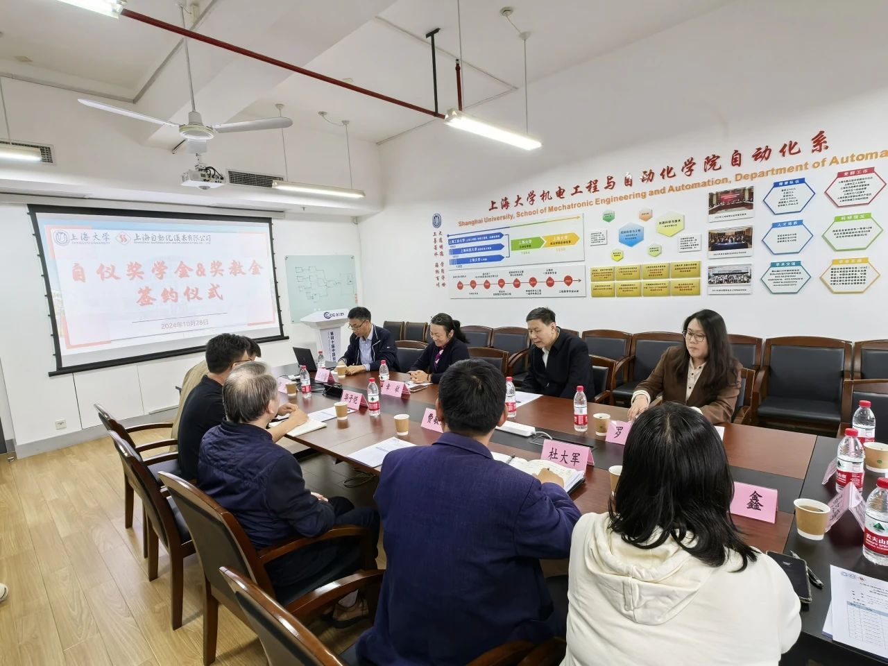 10月28日,上海自儀與上海大學(xué)機電工程與自動化學(xué)院(簡稱:機自學(xué)院)“自儀獎學(xué)金&獎教金”簽約儀式舉行。雙方共同簽署了《上海大學(xué)教育發(fā)展基金會捐贈協(xié)議書》以及《合作培養(yǎng)學(xué)生和資助教學(xué)協(xié)議書》,就繼續(xù)開展本科生、研究生合作培養(yǎng)及資助教育教學(xué)達(dá)成一致意見。上海大學(xué)自強書院院長費敏銳,機自學(xué)院副院長華子愷,自動化系黨總支書記邵勇,公司副總經(jīng)理陳凱,黨委副書記、紀(jì)委書記、工會主席章敏,以及學(xué)生代表參加簽約儀式。