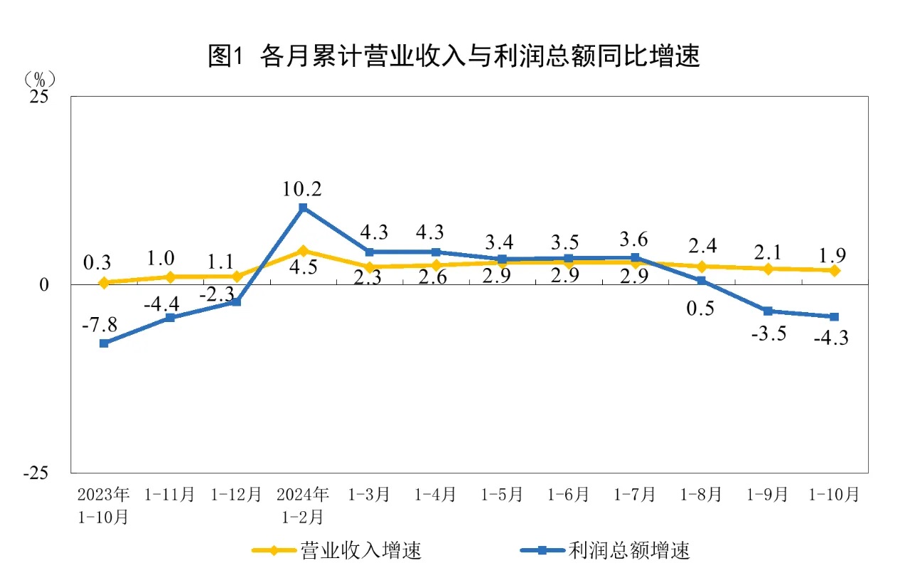 10月份,規(guī)模以上工業(yè)企業(yè)利潤(rùn)同比下降10.0%