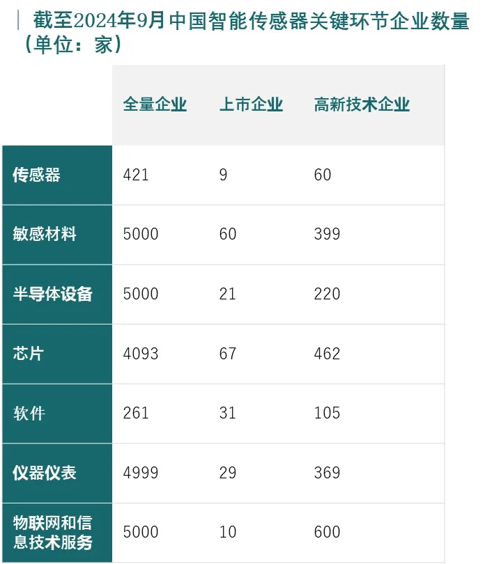 截至20249月,中國智能傳感器全產(chǎn)業(yè)鏈企業(yè)數(shù)量達(dá)到2.0萬家,其中,上市企業(yè)227家、高新技術(shù)企業(yè)2215家。十五五時(shí)期,隨著物聯(lián)網(wǎng)、人工智能、智能制造等領(lǐng)域的快速發(fā)展,中國智能傳感器在智能家居、可穿戴設(shè)備、智能移動(dòng)終端等新興領(lǐng)域的應(yīng)用將不斷增加。