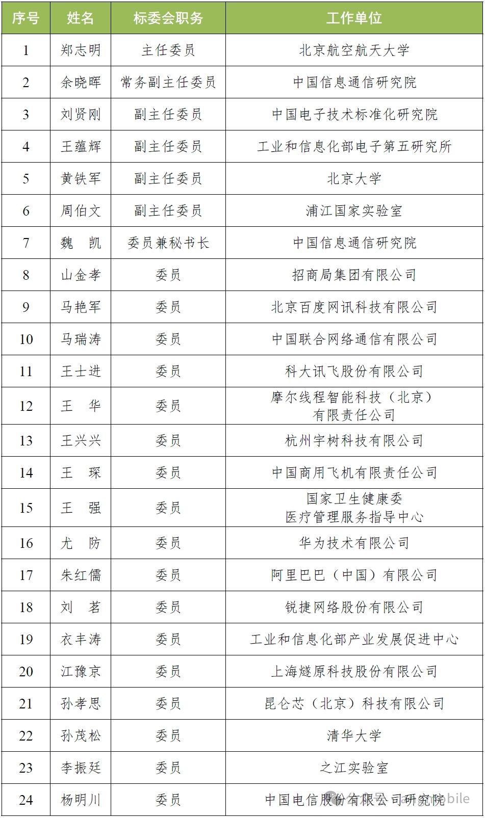 【附】第一屆工信部AI標(biāo)準(zhǔn)化技術(shù)委員會委員