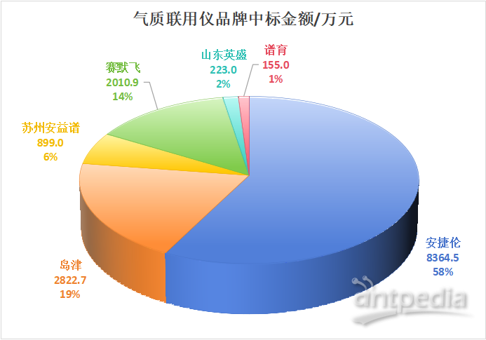 島津也表現出色,共中標19臺,中標金額為2822.7萬元。其GCMS-QP2020 NXGCMS-TQ8040 NXGCMS-TQ8050 NX三款產品分別中標7臺套、6臺套和6臺套。