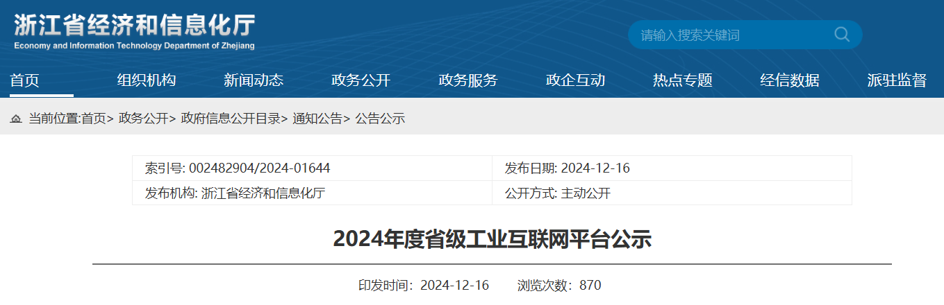 1216日,浙江省經濟和信息化廳正式公布“2024年度省級工業互聯網平臺名單公示結束,浙江正泰儀器儀表有限責任公司(簡稱正泰儀表)成功入選。
