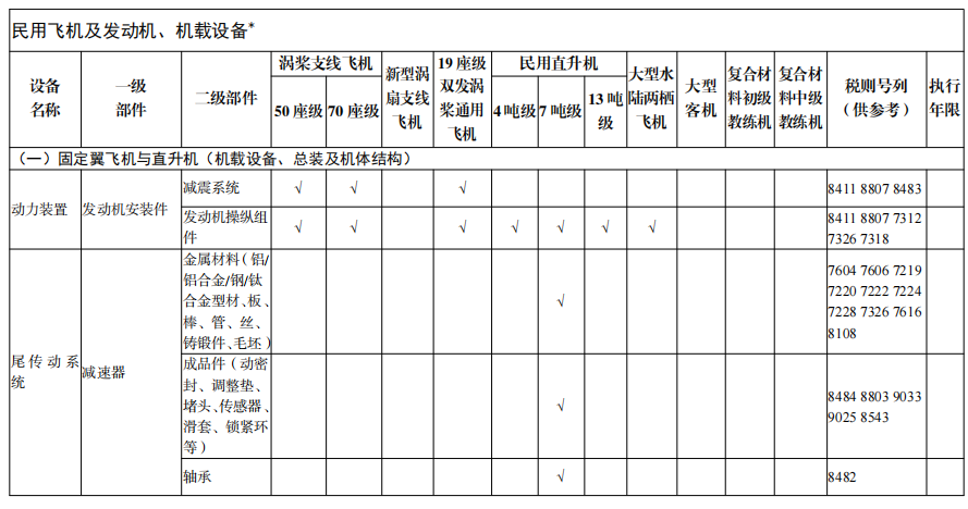3. 民用飛機及發動機、機載設備*3.1 尾傳動系統:
