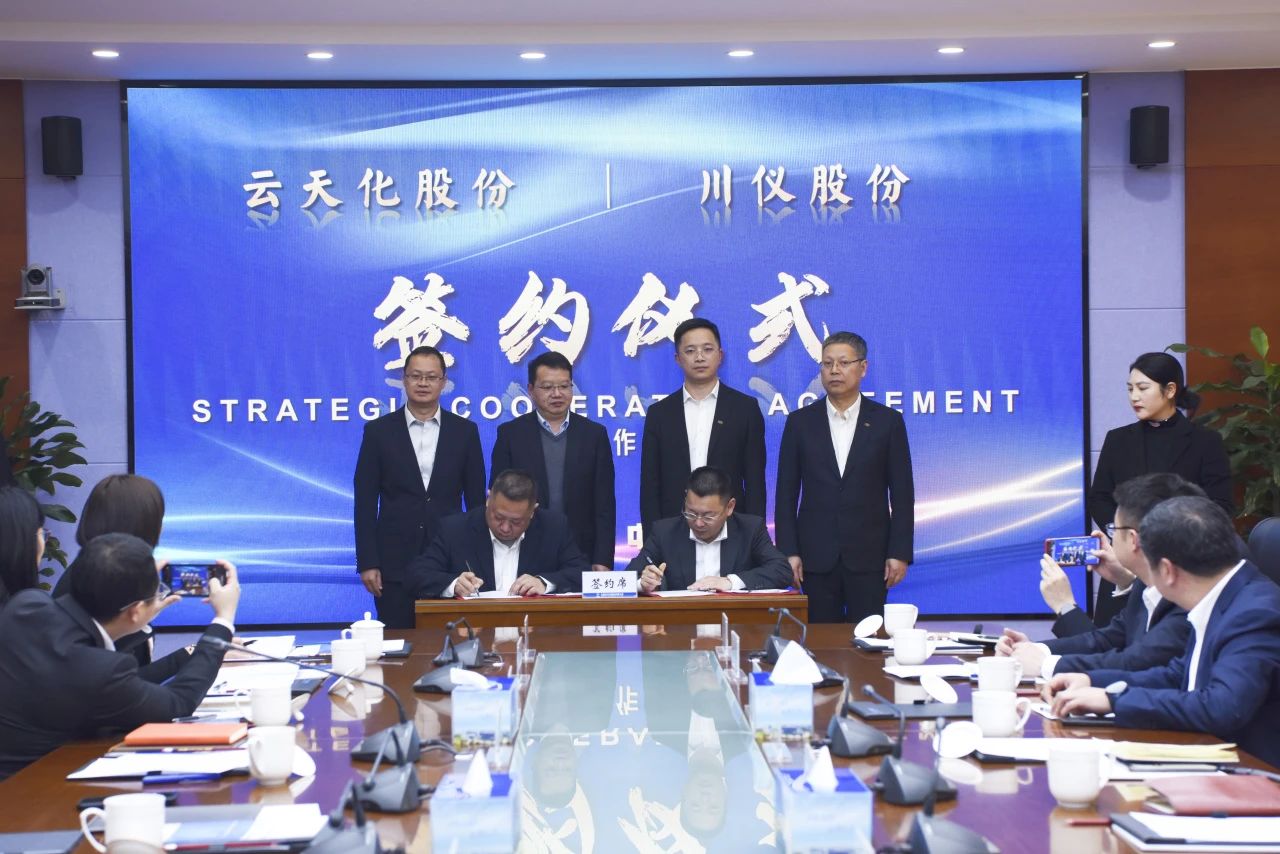 近日,重慶川儀自動化股份有限公司(以下簡稱“川儀股份”)黨委副書記、總經(jīng)理吳正國率隊(duì)拜訪云南云天化股份有限公司(以下簡稱“云天化股份”)。云天化股份黨委副書記、總經(jīng)理王宗勇對吳正國一行的來訪表示歡迎,雙方圍繞各自企業(yè)的基本情況、發(fā)展歷程、業(yè)務(wù)領(lǐng)域等進(jìn)行了深入交流,吳正國、王宗勇分別代表兩家企業(yè)簽署戰(zhàn)略合作協(xié)議。