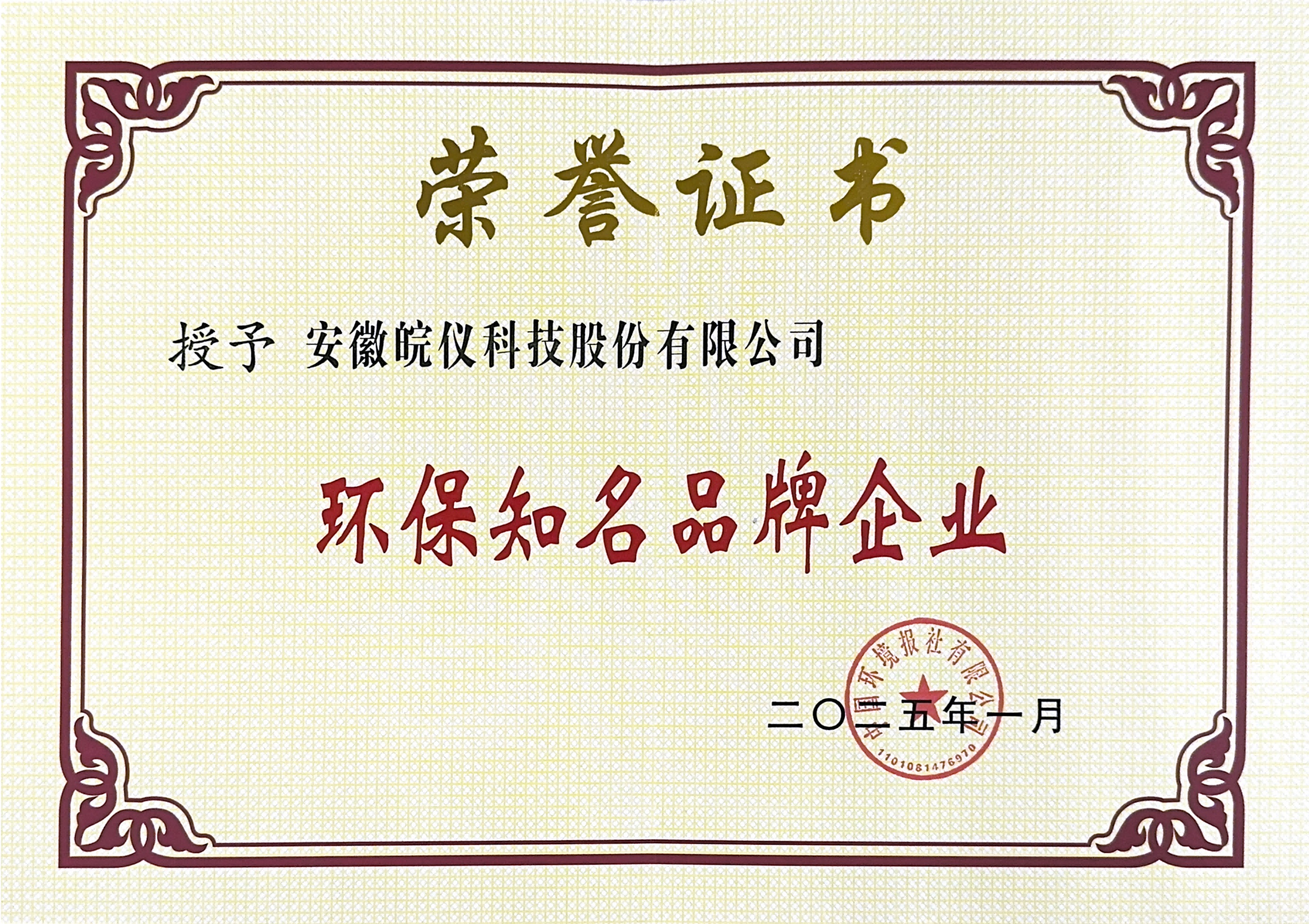 為推動環保企業的綠色品牌建設,中國環境報社開展環保知名品牌企業宣傳推介活動,皖儀科技憑借高質量的產品與服務,榮獲2024環保知名品牌企業。