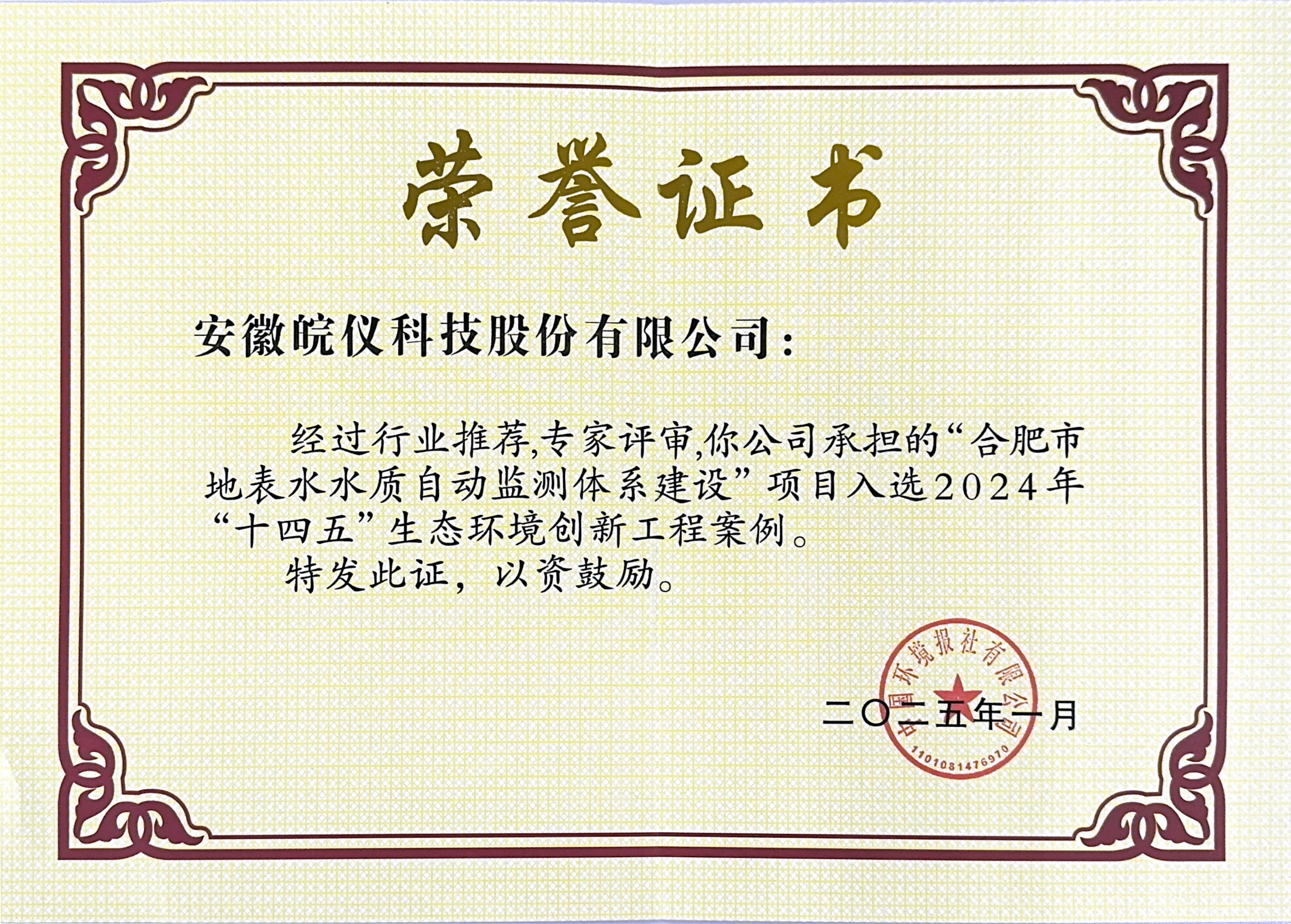 經過行業推薦,專家評審,皖儀科技承擔的合肥市地表水水質自動監測體系建設項目入選中國環境報社2024十四五生態環境創新工程案例。