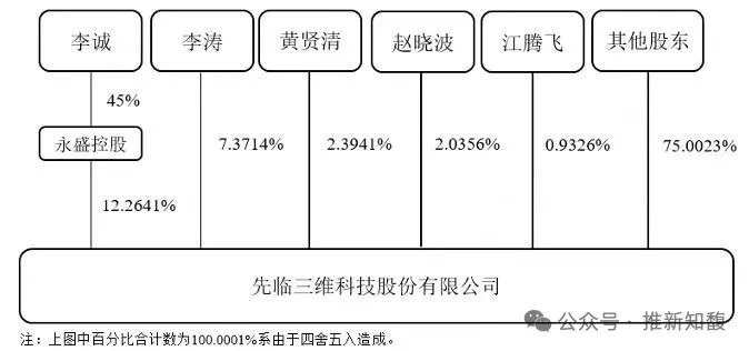 李濤、黃賢清、趙曉波、江騰飛通過與李誠簽署一致行動協議方式,與李誠一起共同成為先臨三維的實際控制人,合計控制公司表決權比例為24.9977%