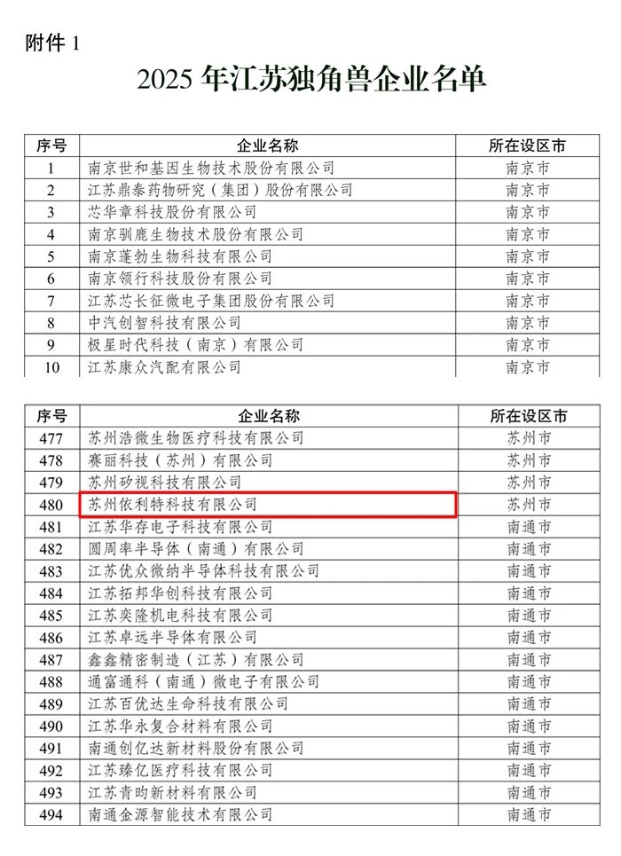 依利特科技榮登2025年江蘇獨(dú)角獸企業(yè)名單