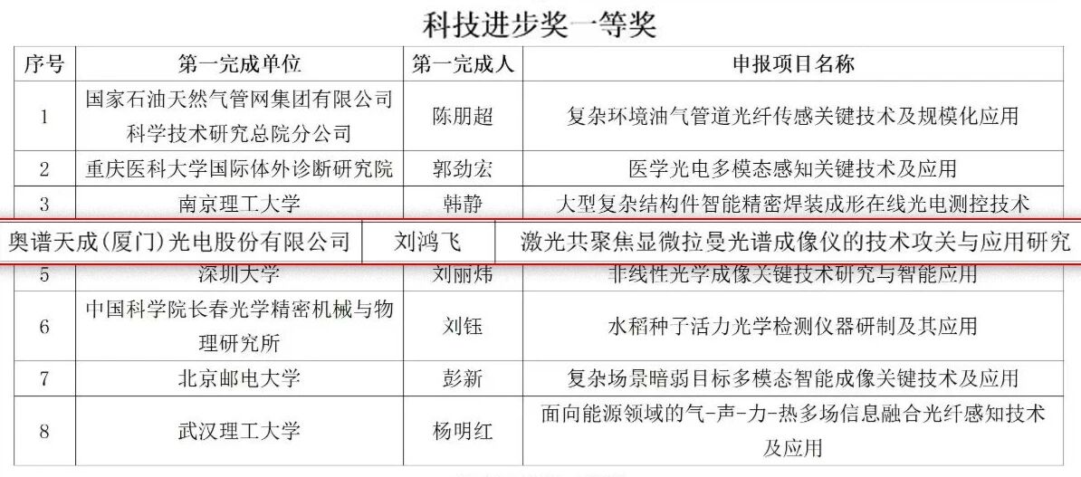 近日,奧譜天成憑借《激光共聚焦顯微拉曼光譜成像儀的技術(shù)攻關(guān)與應(yīng)用研究》,榮獲“中國光學(xué)工程學(xué)會科學(xué)技術(shù)獎”科技進(jìn)步獎一等獎。