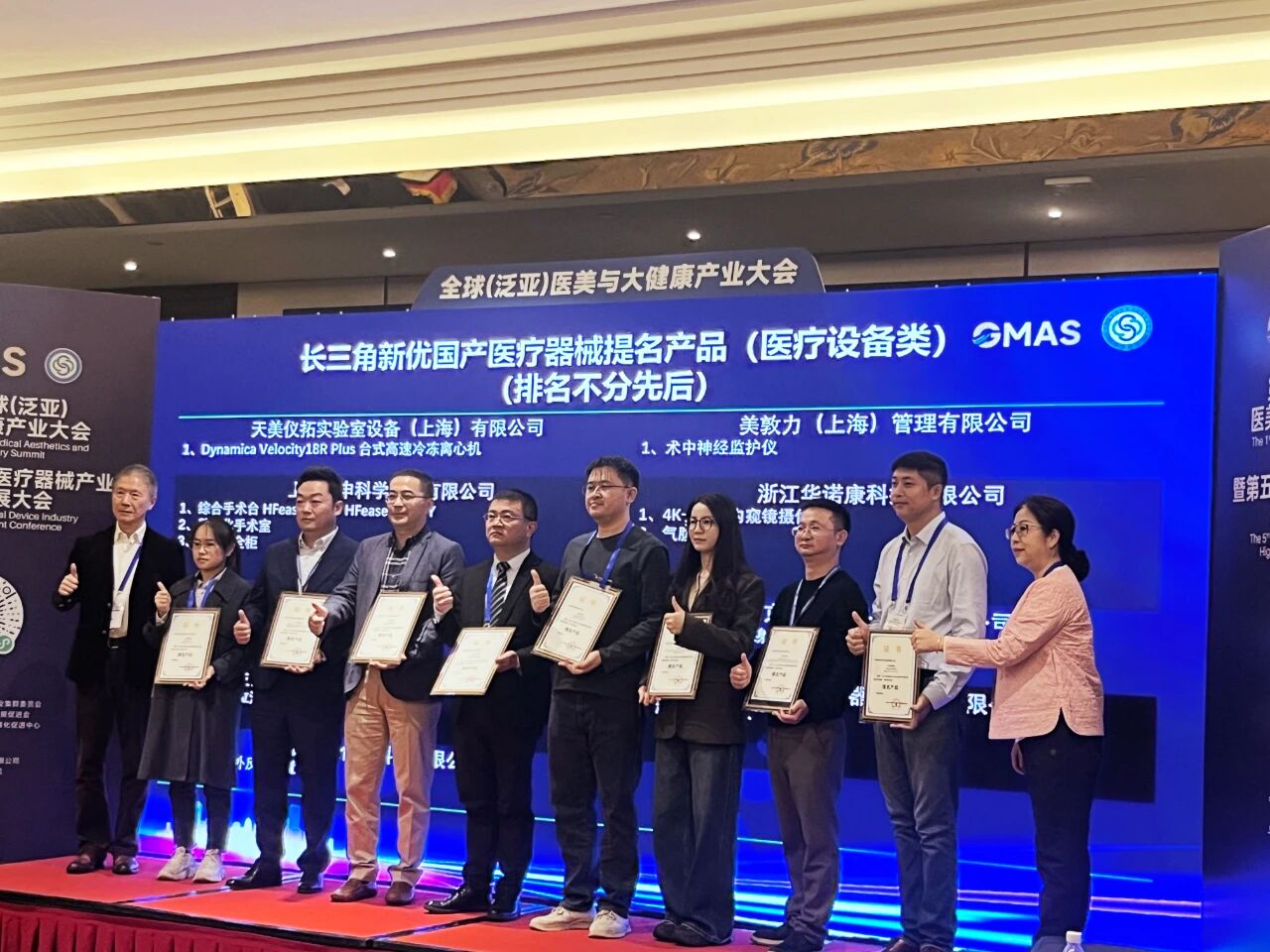 天美旗下Dynamica Velocity18R Plus臺(tái)式高速冷凍離心機(jī)從眾多國(guó)產(chǎn)設(shè)備中脫穎而出,榮獲“2025年度長(zhǎng)三角優(yōu)秀國(guó)產(chǎn)醫(yī)療設(shè)備耗材遴選”醫(yī)療設(shè)備類提名產(chǎn)品。