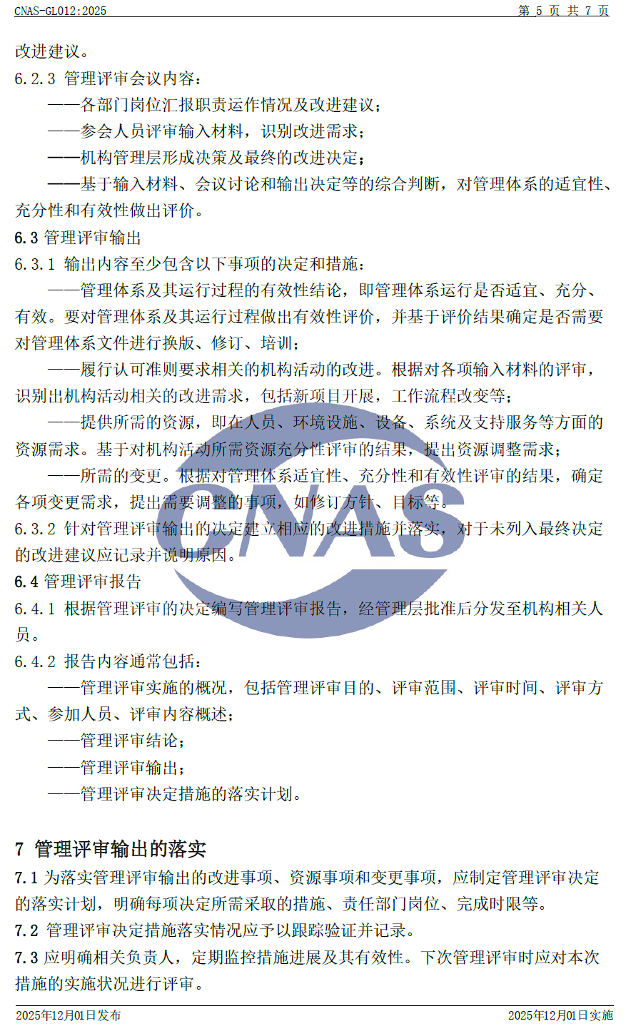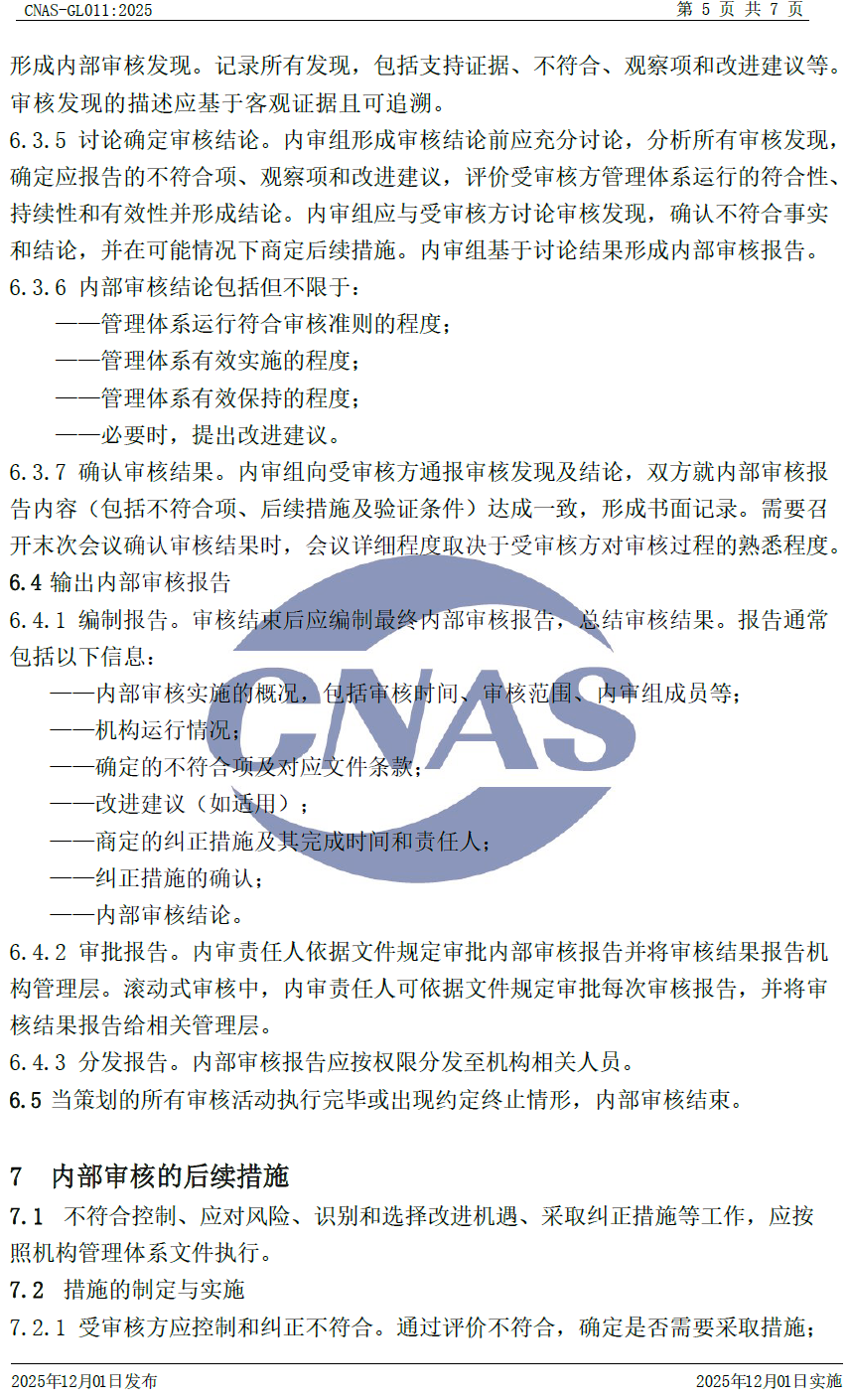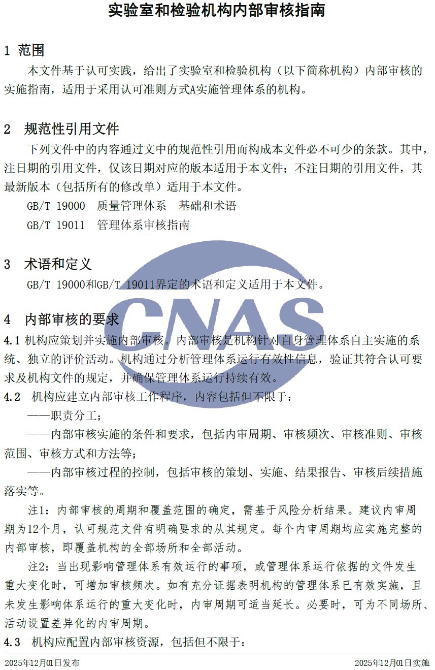 摘要:中國(guó)合格評(píng)定國(guó)家認(rèn)可委員會(huì)(CNAS)近日發(fā)布CNAS-GL011:2025 《實(shí)驗(yàn)室和檢驗(yàn)機(jī)構(gòu)內(nèi)部審核指南》和CNAS-GL012:2025 《實(shí)驗(yàn)室和檢驗(yàn)機(jī)構(gòu)管理評(píng)審指南》。兩份文件已于2025年12月1日正式實(shí)施。