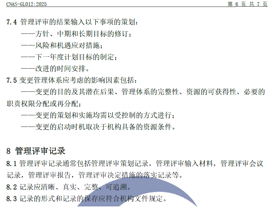 ——更改了管理評(píng)審輸入信息的技術(shù)內(nèi)容(見6.1.2,GL012:20187.2);