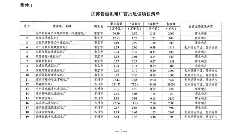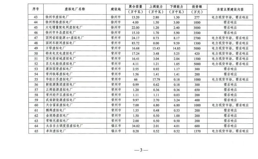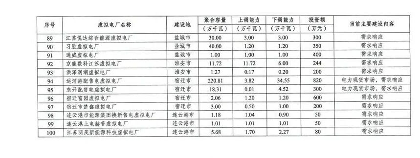 江蘇省虛擬電廠重點(diǎn)建設(shè)項(xiàng)目清單:100個(gè)項(xiàng)目,總投